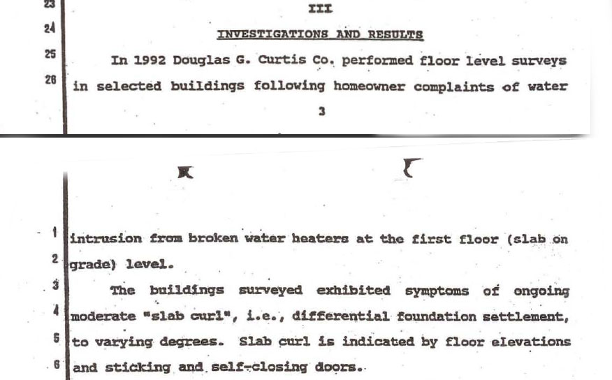 Edgewater Isle North Homeowners Association alleged "slab curl" in its 1994 lawsuit: