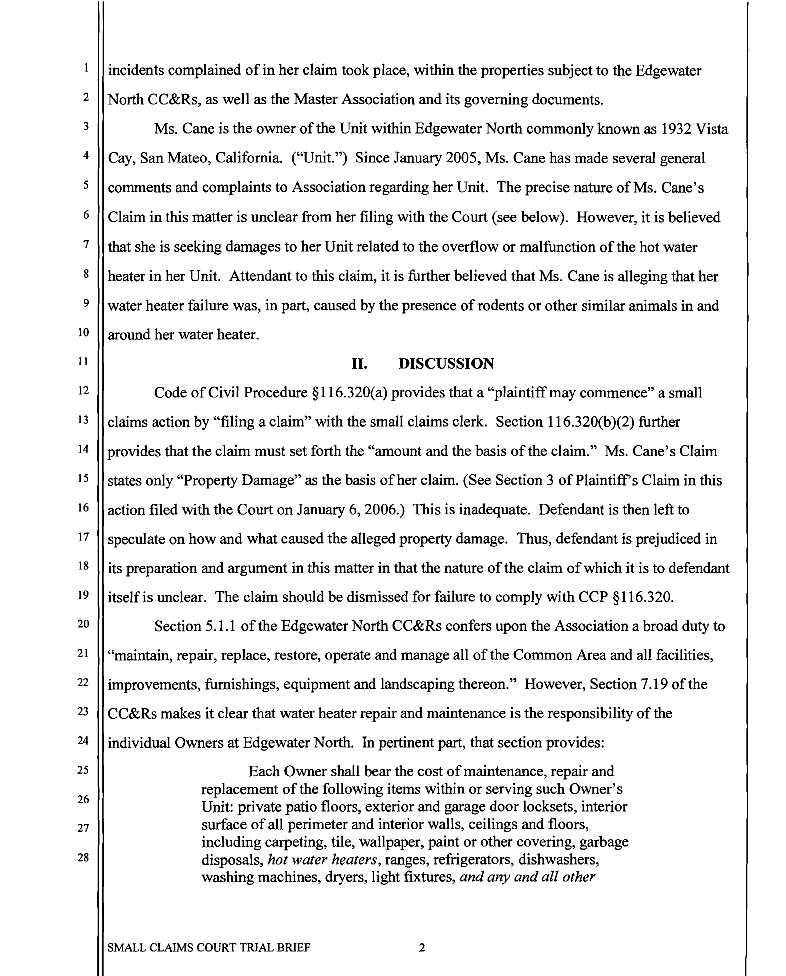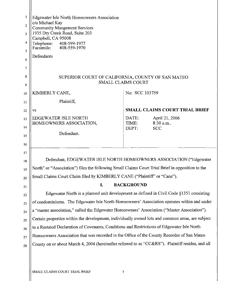 The court outright ignored Edgewater Isle North's request for costs of $200, their requests for dismissal because of supposed "failure to comply" with CCP 116. How could this be "in the Association's favor?" It's a LIE. Edgewater Isle North lost the small claims case.