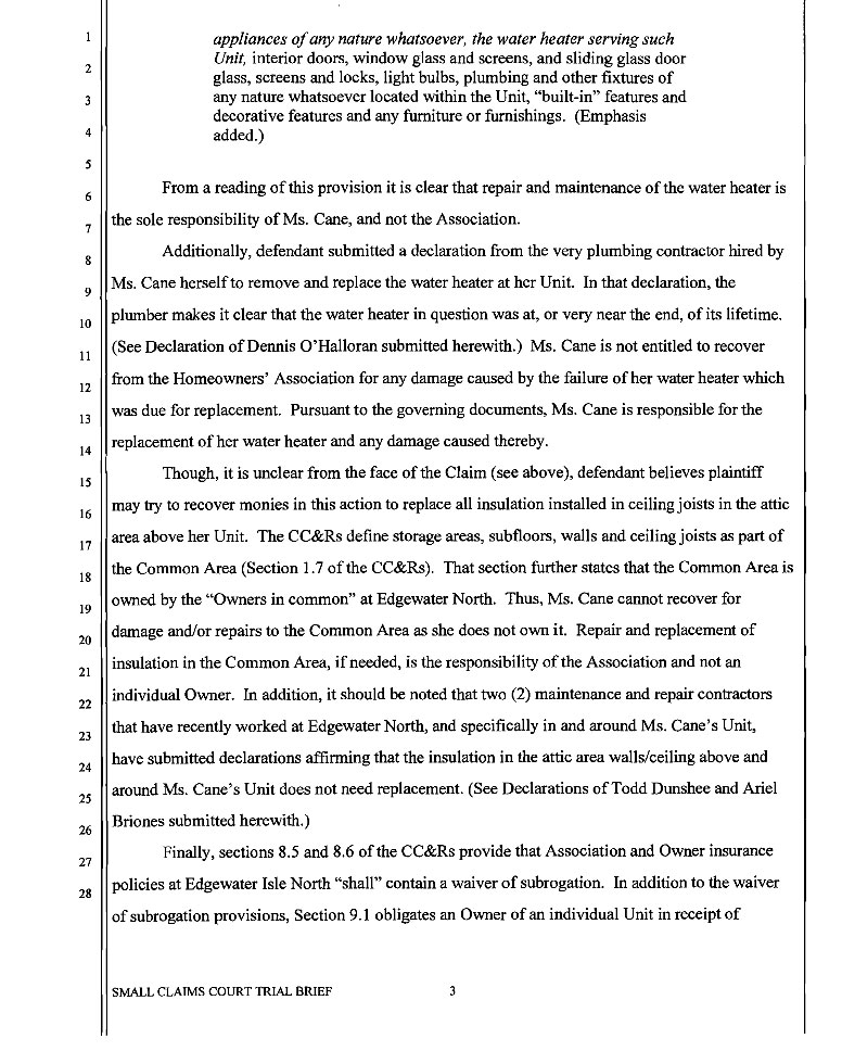 So, having had enough, homeowner filed a claim in Small Claims Court against North and Master Associations to replace the insulation and repair the wiring. The Edgewater Isle North Homeowners Association and the Edgewater Isle Master Owners Association both played games with the small claims case.