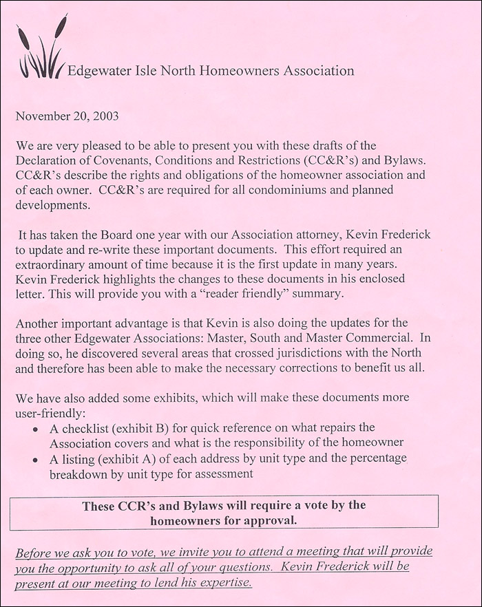 Because bylaws and rules and stuff only apply to homeowners, not to board members, the Edgewater Isle North board of directors shoved through a quick and sneaky change to the bylaws hoping no one would notice.